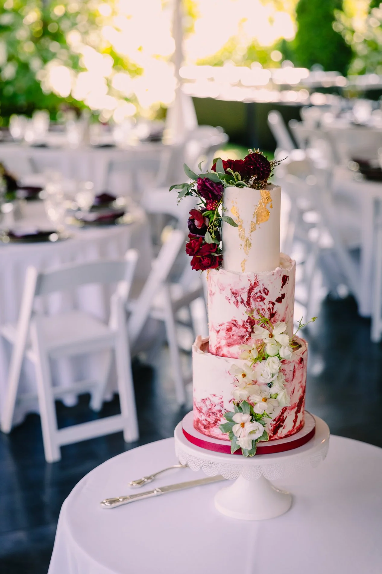 Tying your cake florals in with the rest of your décor is a classic method of creating a cohesive look between some of the major elements in your reception space. But this leads us to the most important question: